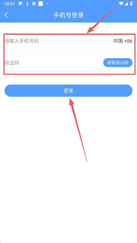 4、输入【手机号码,获取并填写验证码后】,点击【登录】按钮,即可完成登录操作。