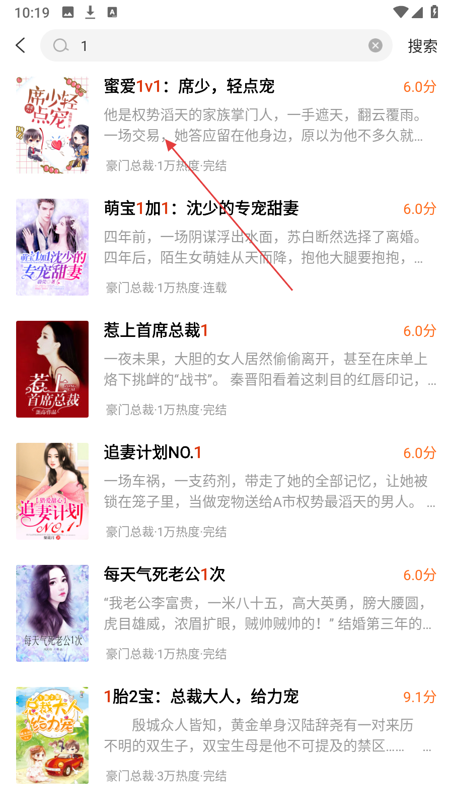 4、在搜索结果页面,点击【感兴趣的小说】,进入小说开始阅读即可。