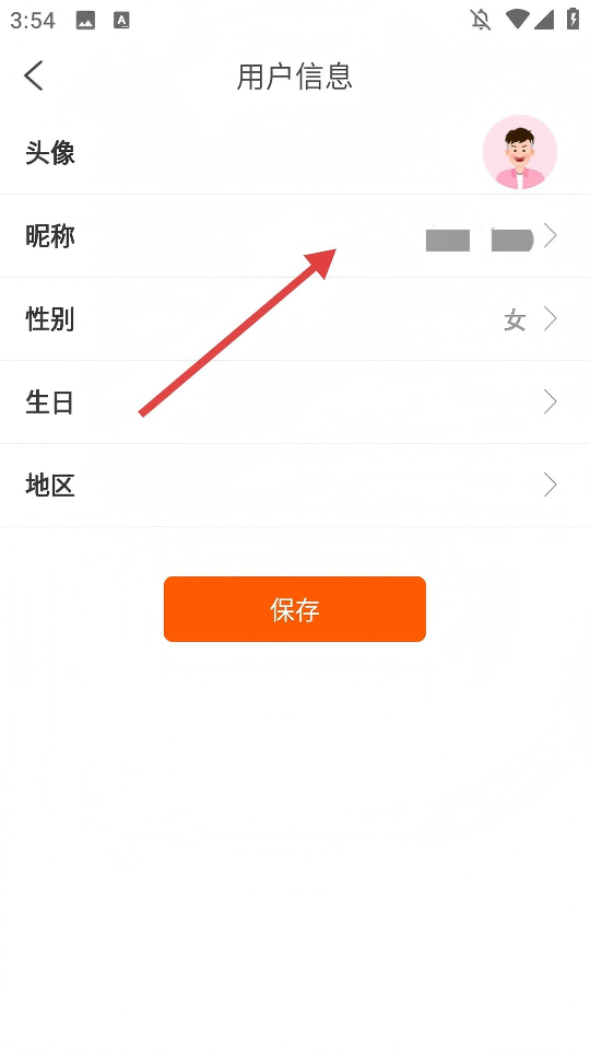 3、在用户信息界面点击【昵称】,进入昵称修改页面。