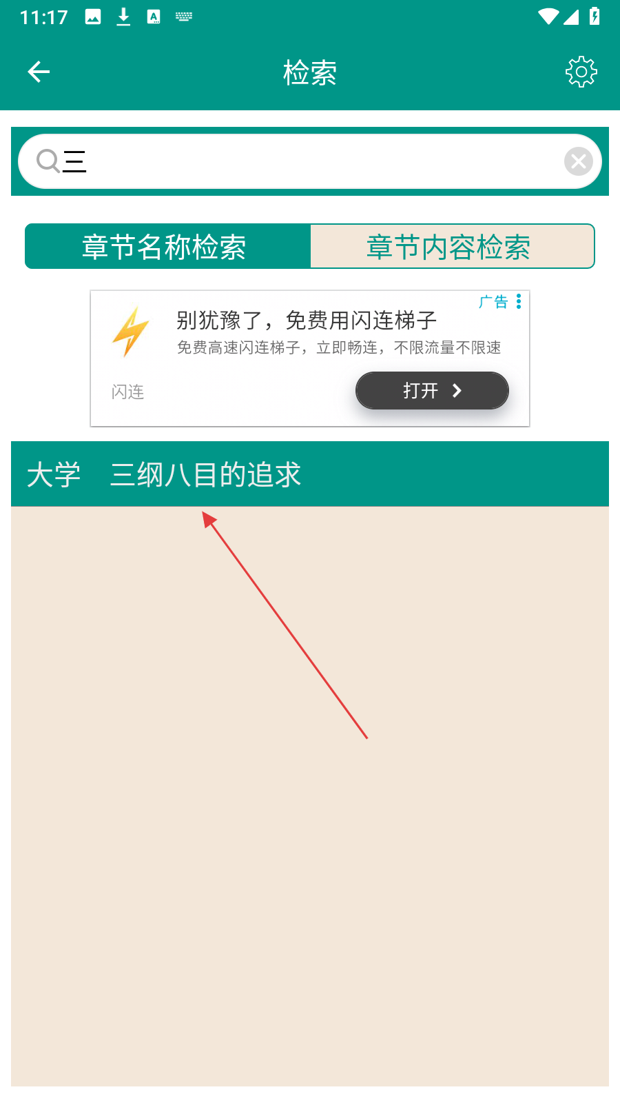 3、在搜索框中【输入关键词】后,点击【目标章节】进入页面。