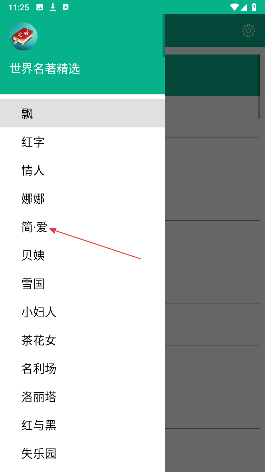 1、在书籍章节列表页面,点击【左上角菜单图标】,展开名著列表。