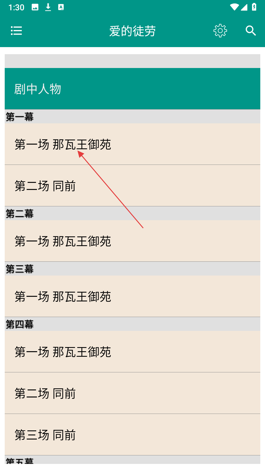 1、在文章章节列表页面,点击【想要阅读的章节】进入章节阅读页面。