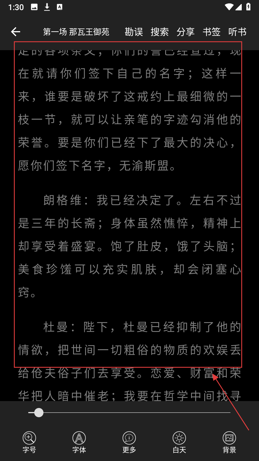 2、进入章节阅读页面后,点击【页面中间区域】唤出菜单。