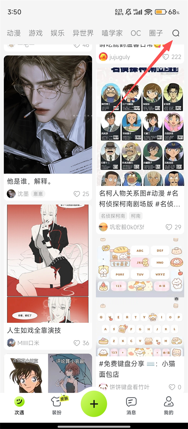 1、在【百度输入法】主页,点击【搜索】按钮,进入搜索界面,为查找心仪表情包迈出第一步哦。