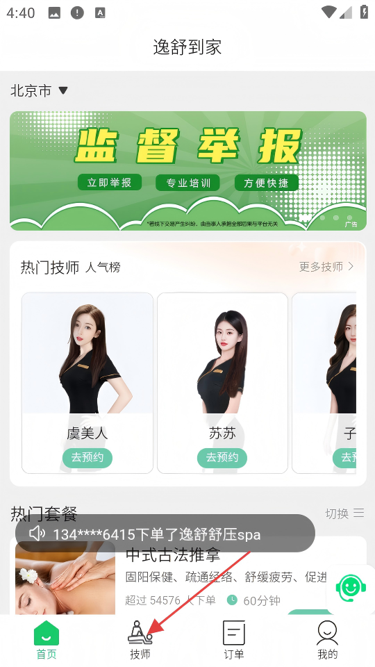 1、点击底部【技师】,进入技师列表页面,可查看众多技师的相关信息。
