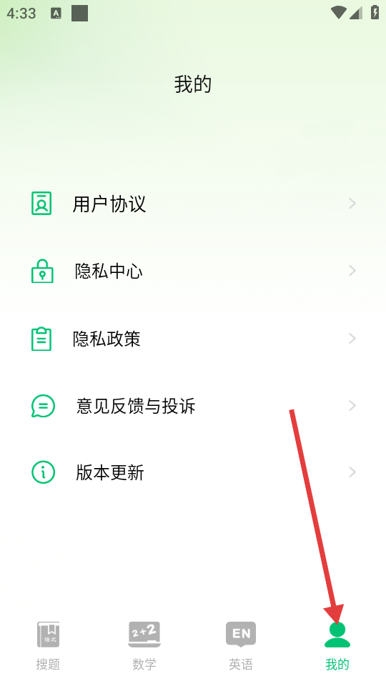 4、点击底部【我的】,进入个人页面,可查看用户协议、隐私中心、隐私政策,进行意见反馈与投诉、版本更新等操作。