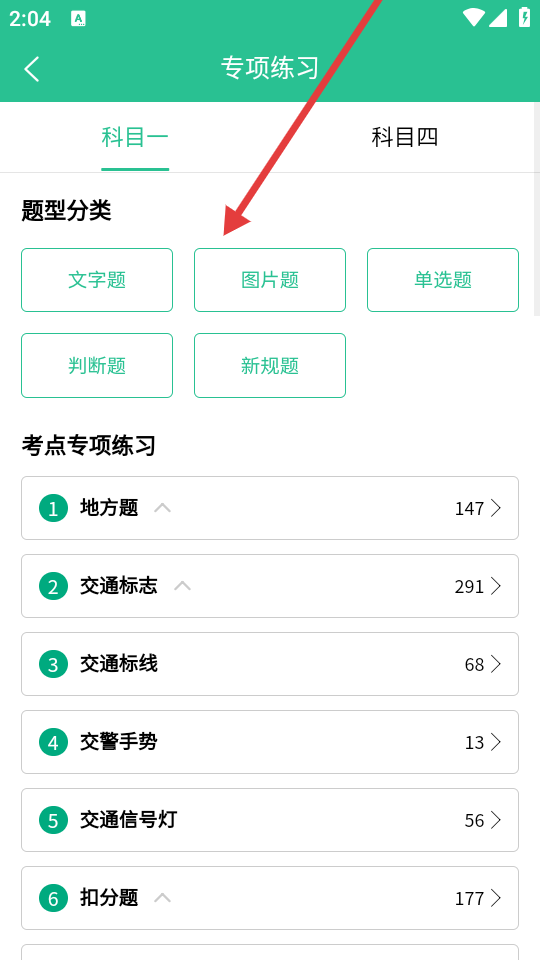 3、在专项练习页面,选择分类后,进入对应题型练习。