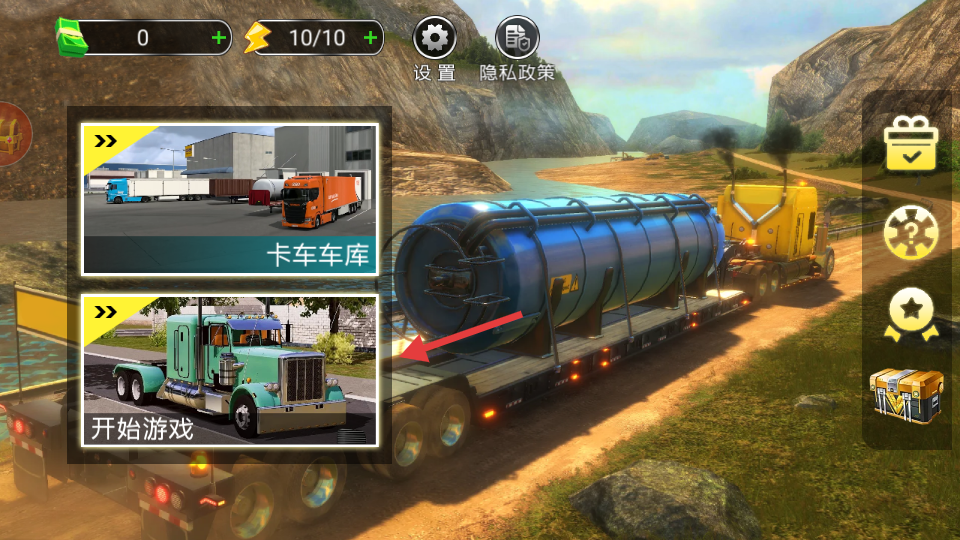 1、游戏界面点击【开始游戏】,进入卡车驾驶场景,准备开展运输任务。