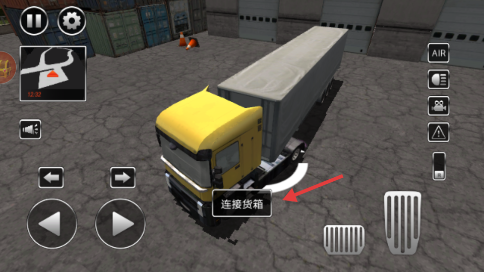 3、点击【连接货箱】按键,操作卡车完成货箱连接。