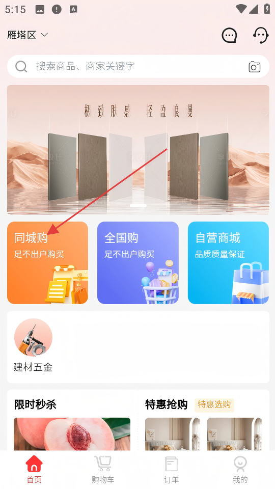 1、进入APP首页,点击【同城购】选项,进入同城购页面。
