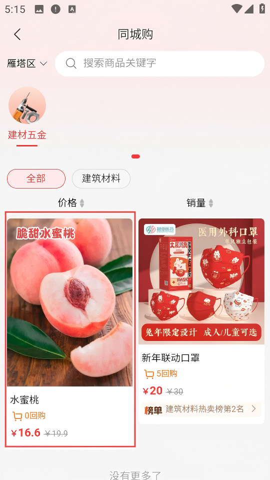 2、在同城购页面,点击【水蜜桃】商品卡片,进入该商品详情页。