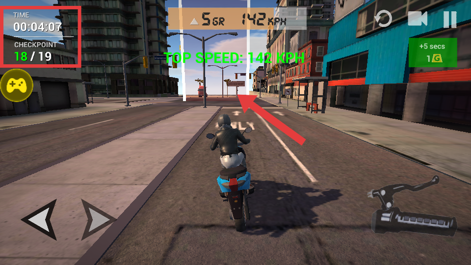 2、驾驶摩托车时,朝着绿色箭头指示的方向行驶,通过城市中的checkpoint。