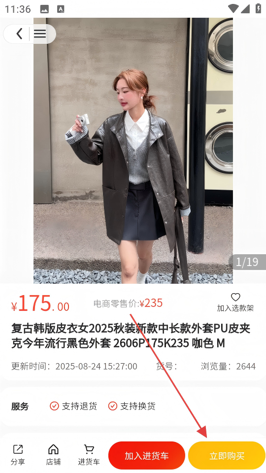 2、在皮衣商品列表中,点击想要查看的皮衣商品。