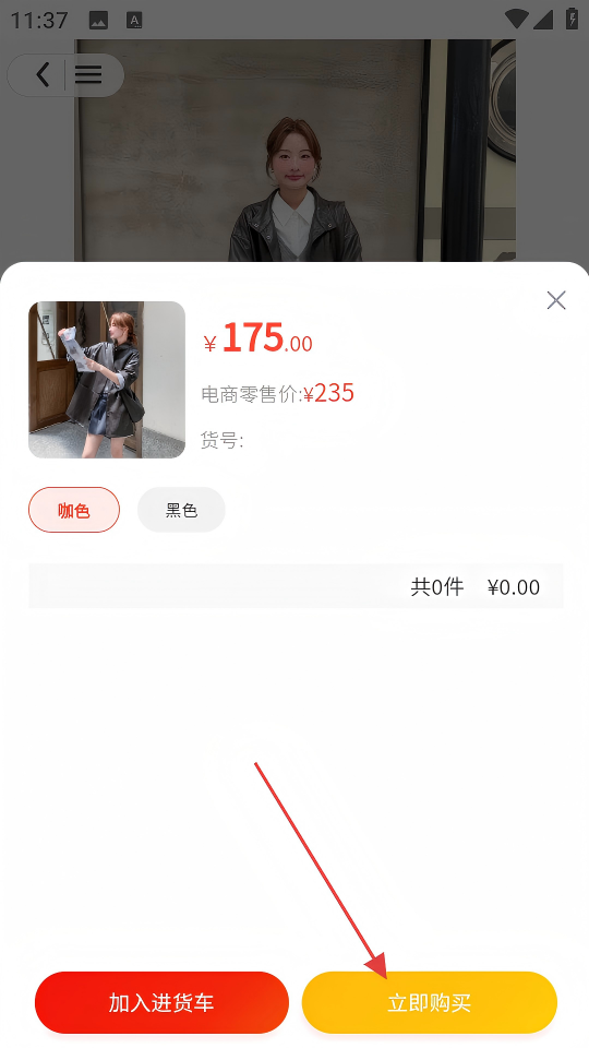 4、在弹出的选择规格页面,选好颜色后,再次点击【立即购买】,即可进行购买操作。