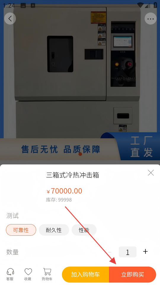5、操作简单易懂:界面设计贴合采购场景,商品信息清晰展示,填地址、下单等操作步骤简单,即使初次使用也能轻松完成试验箱设备选购。