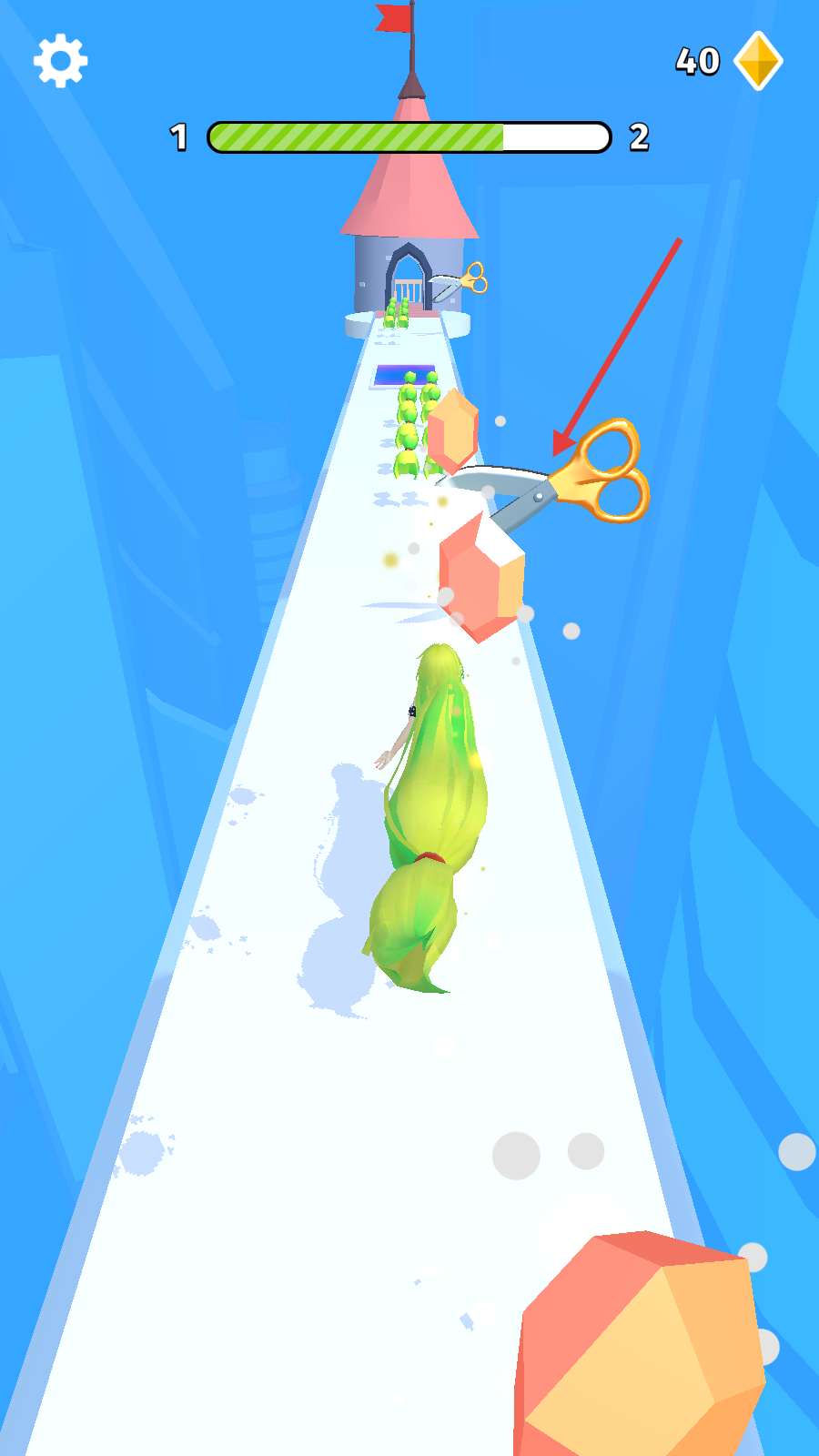 2、剪刀躲避机制:需要灵活避开场景中的剪刀障碍物,一旦碰到剪刀头发就会被剪短,影响最终成绩和排名。