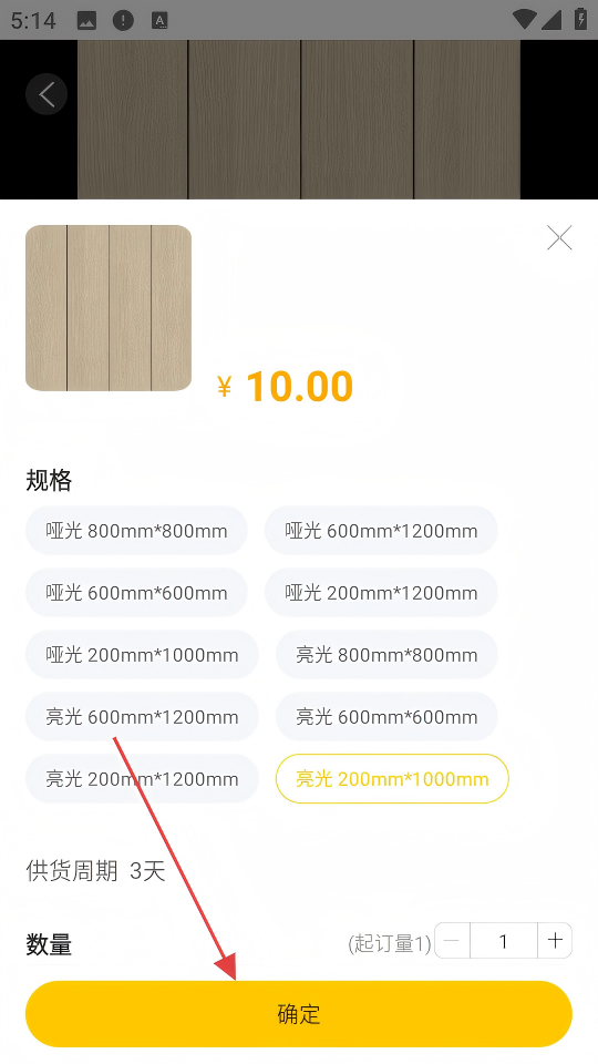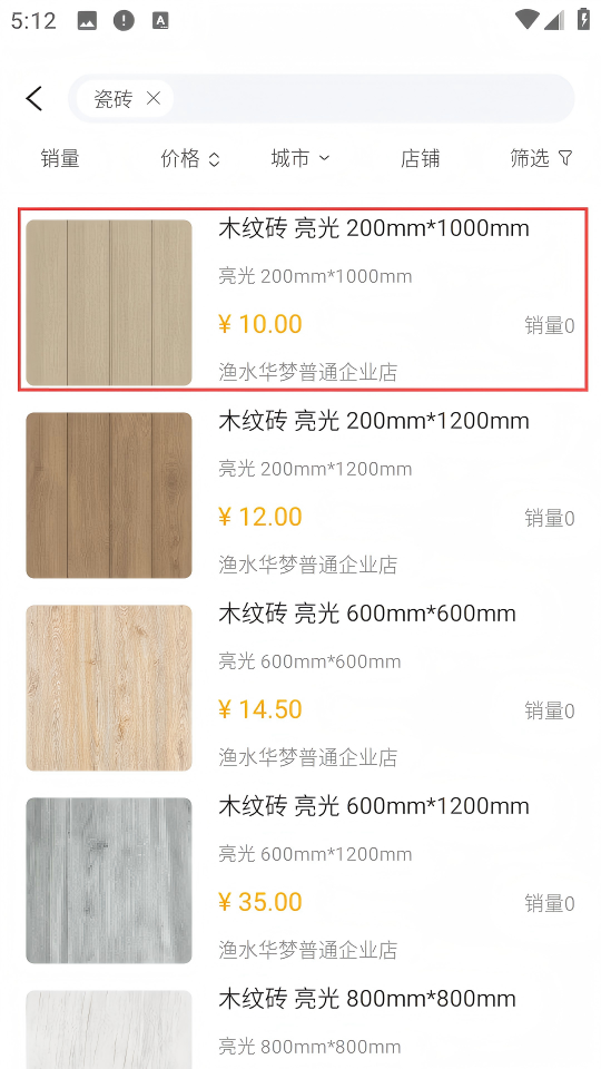 2、在瓷砖商品列表中,选择目标商品。