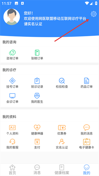 2、在个人中心页面,点击右上角设置按钮,进入设置界面。