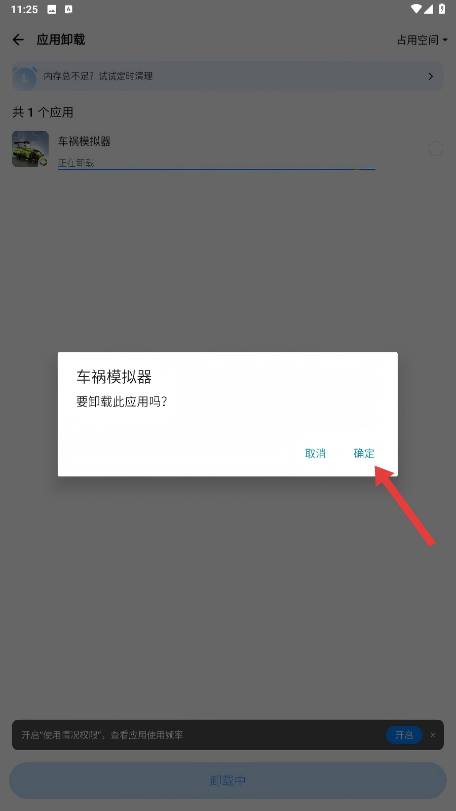 4、此时会弹出确认卸载的弹窗,咱们点击【确定】,这样应用就成功卸载啦。
