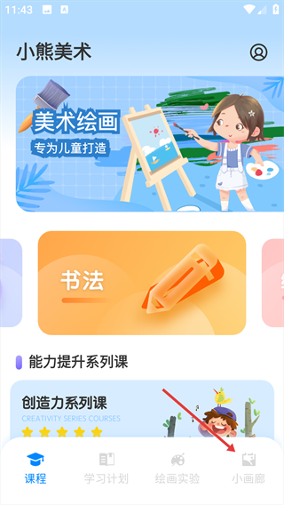 1、进入app首页,点击底部“小画廊”按钮,进入小画廊页面。