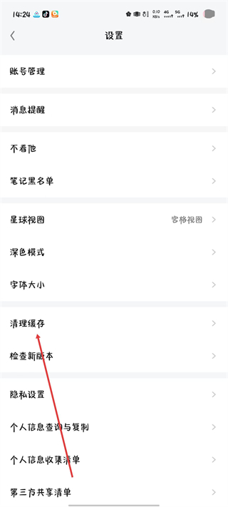 3、在设置页面找到清理缓存选项,点击该选项,弹出确认清理缓存弹窗。