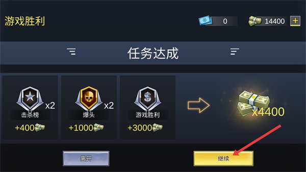 4、游戏胜利后,点击【继续】按钮,领取奖励进入下一个关卡。
