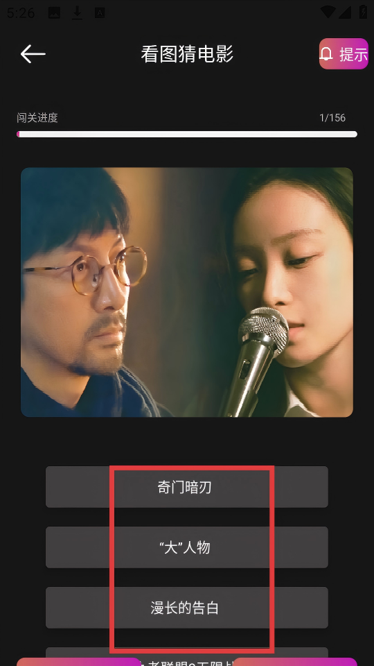 4、在【看图猜电影】界面,根据展示的图片,在选项里选择正确的电影名称。