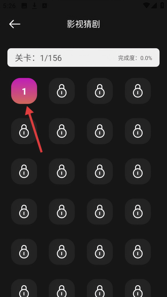 3、在关卡选择页面,点击标有【1】的关卡按钮,开始第一关。