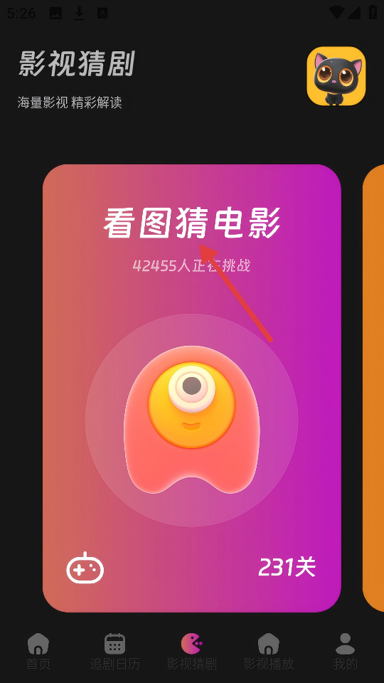 2、在【影视猜剧】页面,点击【看图猜电影】卡片,进入挑战。