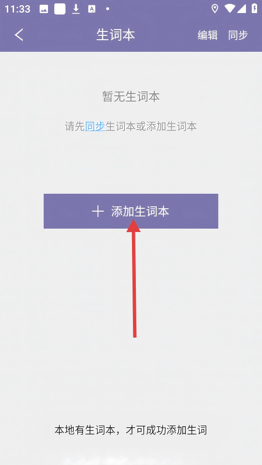 4、进入【生词本】页面,点击【+添加生词本】按钮,创建生词本以便添加生词。