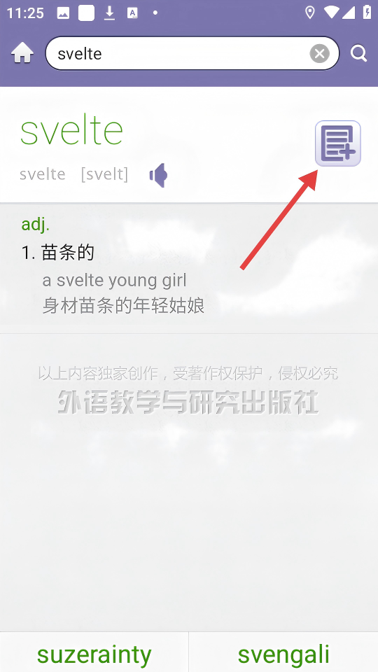 3、在【svelte】单词查询页,点击右上角【添加生词】图标,可将该单词加入生词本。
