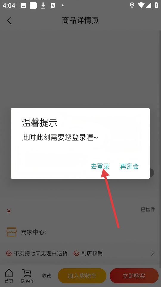 4、点击【去登录】进行账号登录,登录完即可继续购买流程。