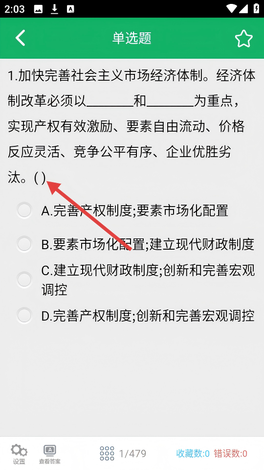 4、在单选题页面,根据题目内容选择正确选项。