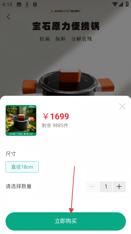 2、在宝石原力便携锅详情页,点击【立即购买】,进入规格选择环节。