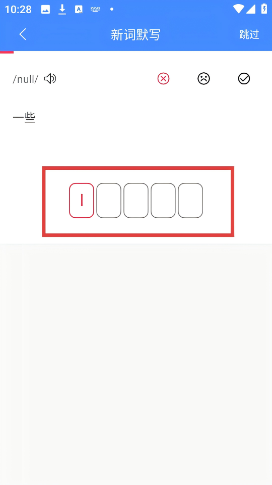 4、在【新词默写】页面,根据【一些】的提示,在对应的方框中完成单词默写,之后可点击对勾确认。