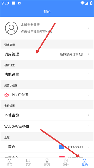 1、在“我的”页面中,点击“词库管理”选项。