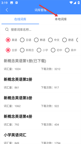 2、在词库管理界面,切换至“本地词库”标签页。