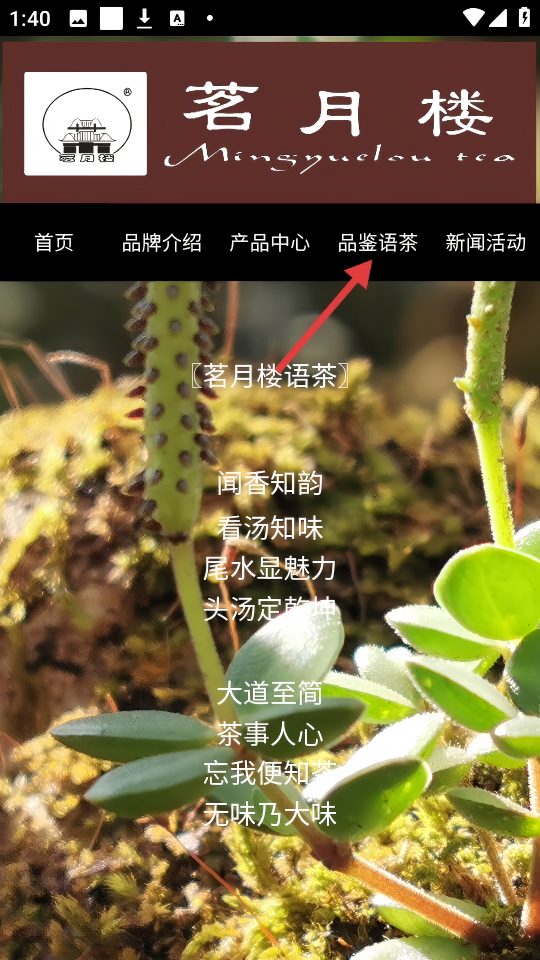 1、在茗月楼页面,点击顶部【品鉴语茶】选项,进入茶文化品鉴相关页面。