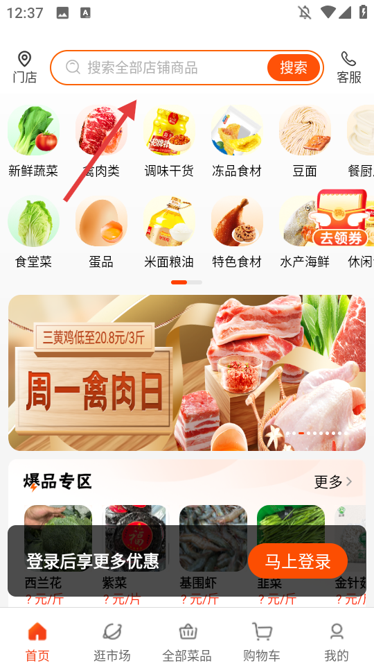 1.系统将自动为用户每天不定时更新更多优惠食材商品信息,用户可随心点击选购