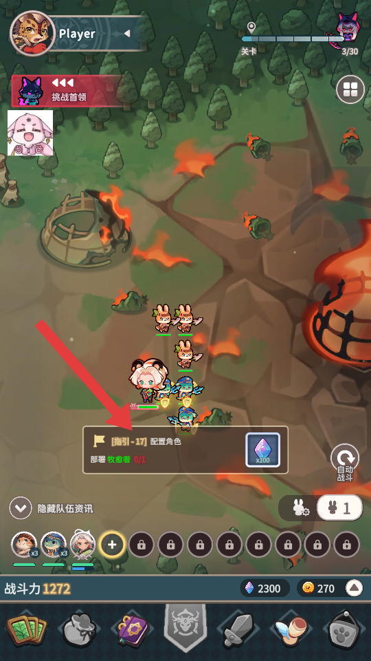 3、接取【指引-17配置角色】任务,目标是部署牧愈者0/1,为战斗做好角色配置准备。