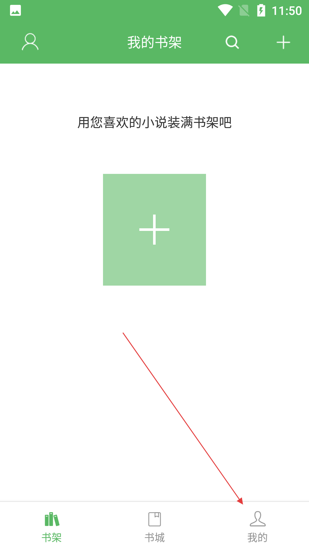 1、在“我的书架”页面,点击底部【我的】,进入个人页面。