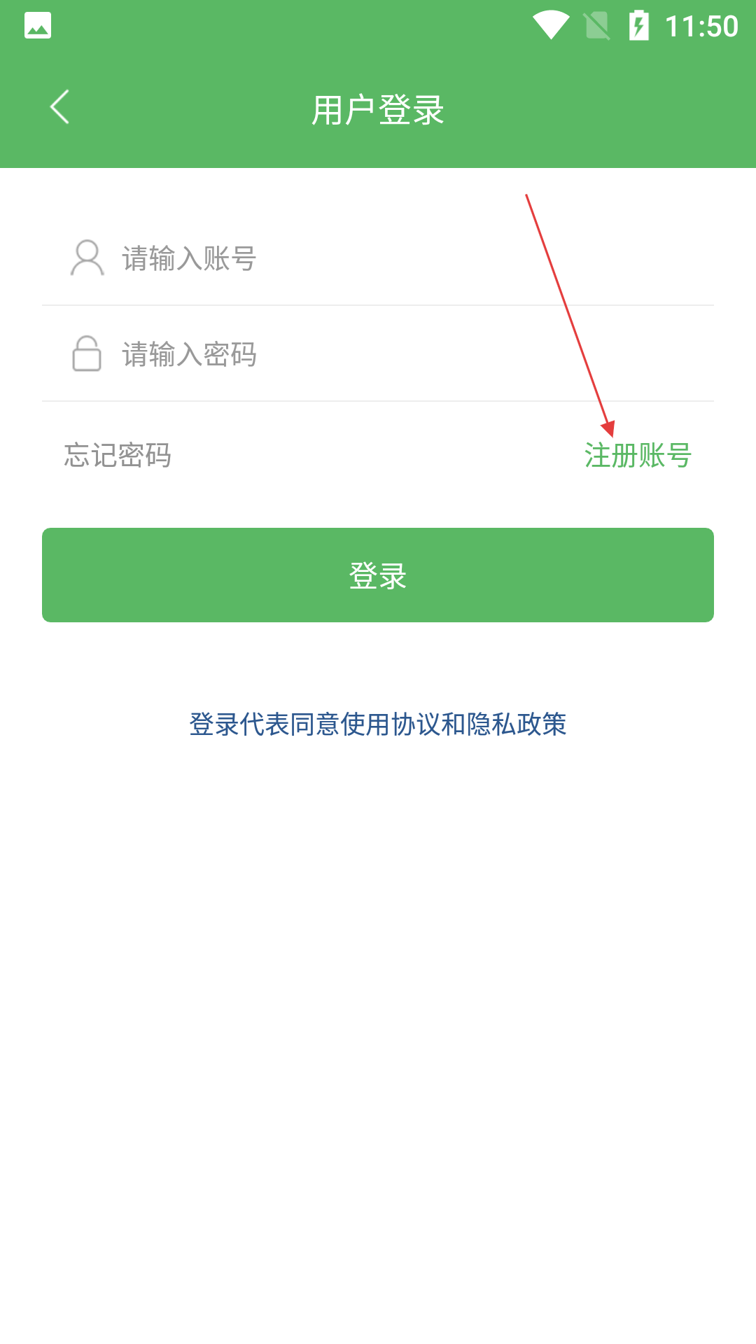 3、在用户登录页面,点击【注册账号】,进入用户注册页面。