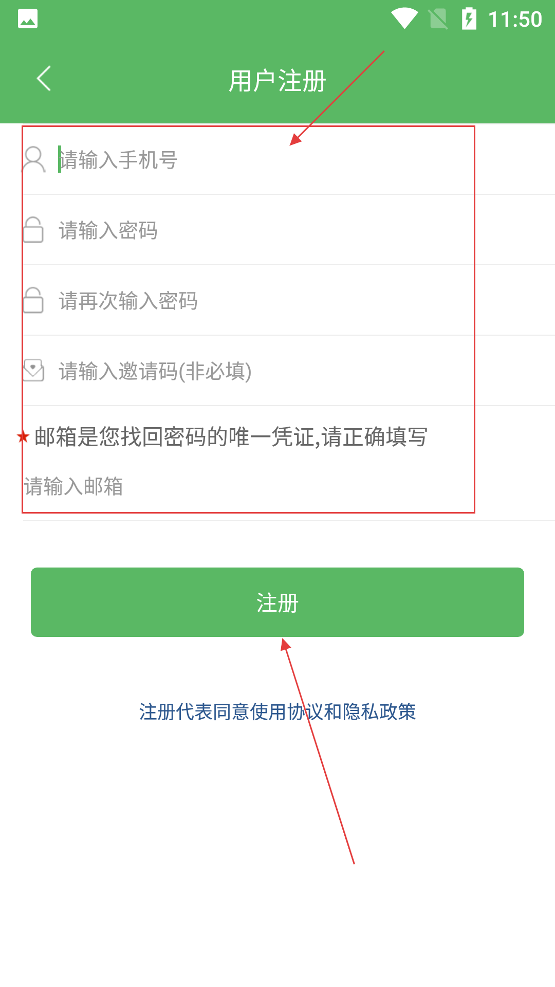 4、依次【填写手机号、密码等信息】后,点击【注册】,即可完成账号注册。