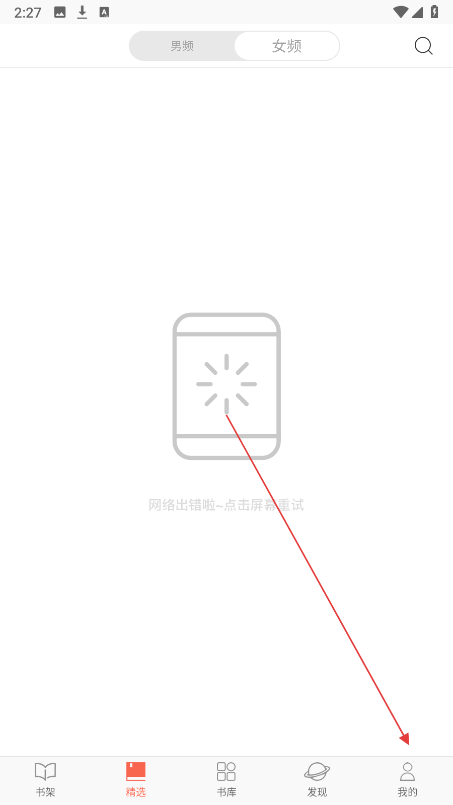 1、在精选页面,点击底部【我的】,进入个人页面。