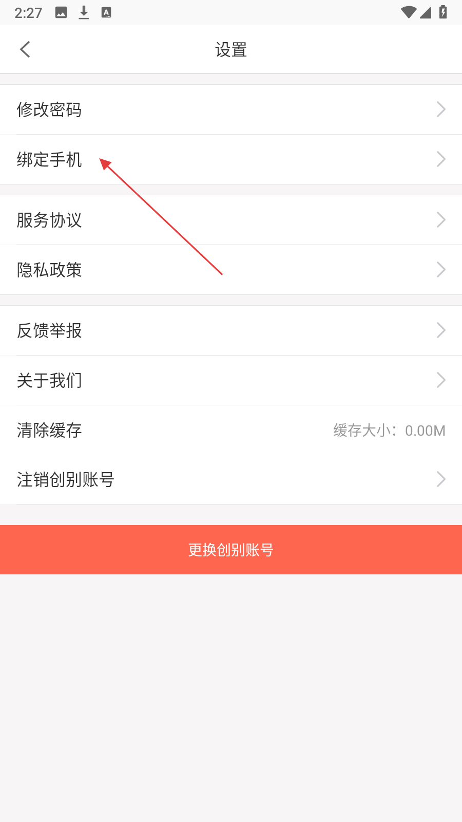 3、在设置页面,点击【绑定手机】,进入绑定手机页面。