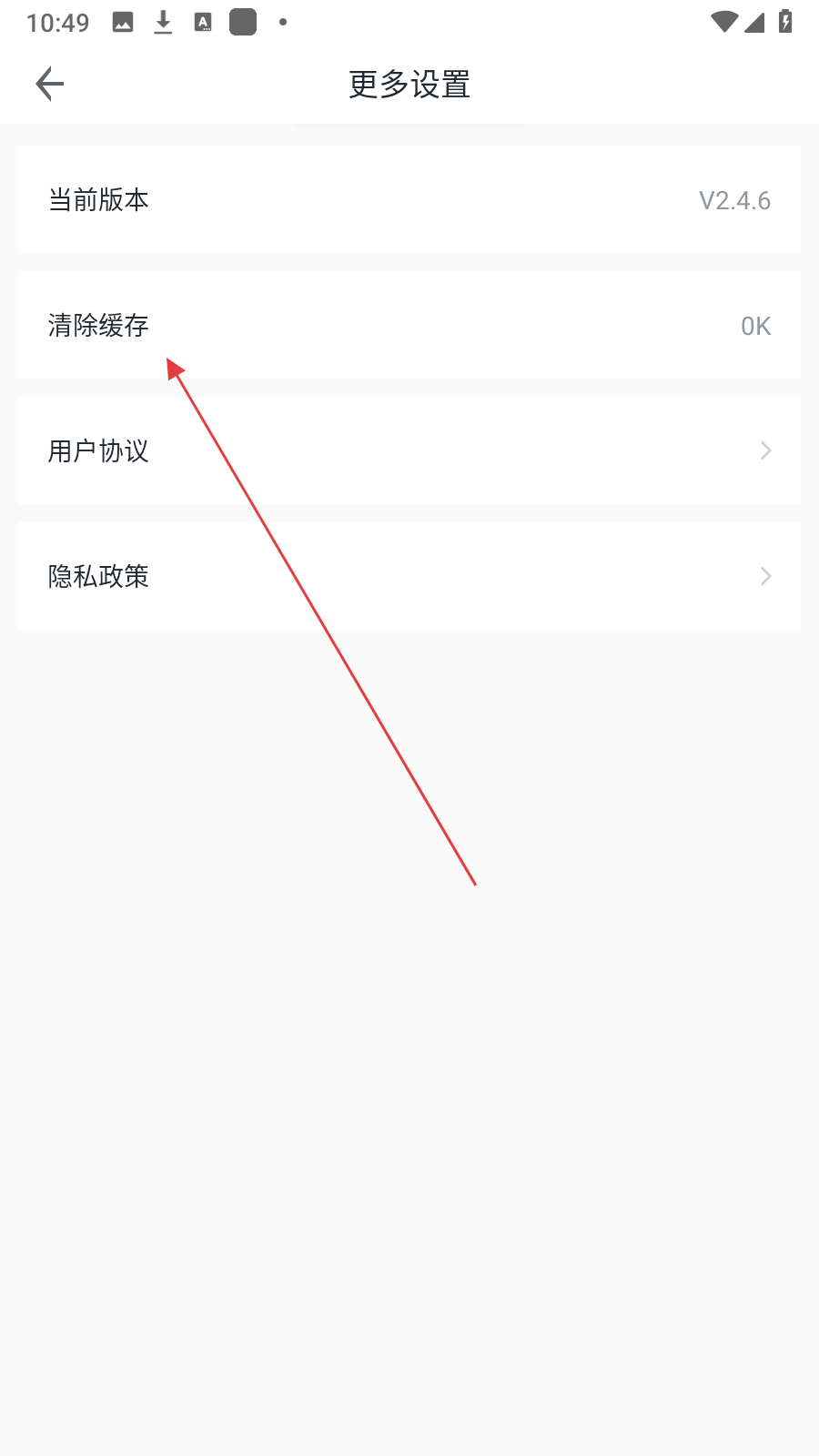 3、在更多设置页面,点击【清除缓存】,弹出提示框。