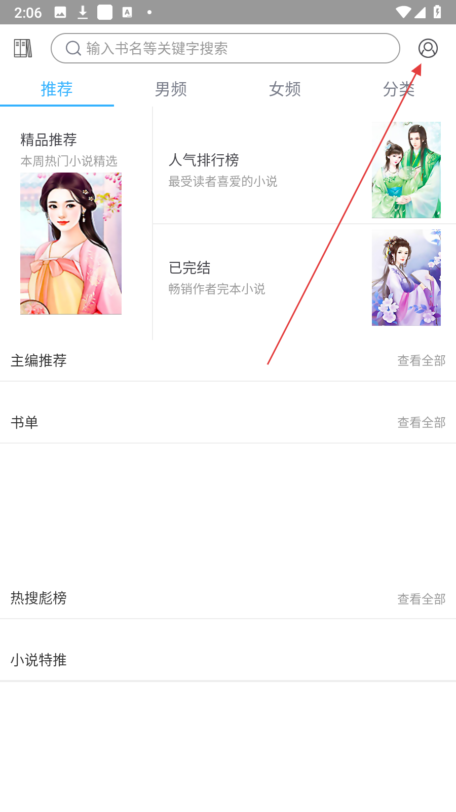 1、在推荐页面,点击右上角【头像图标】,进入我的页面。