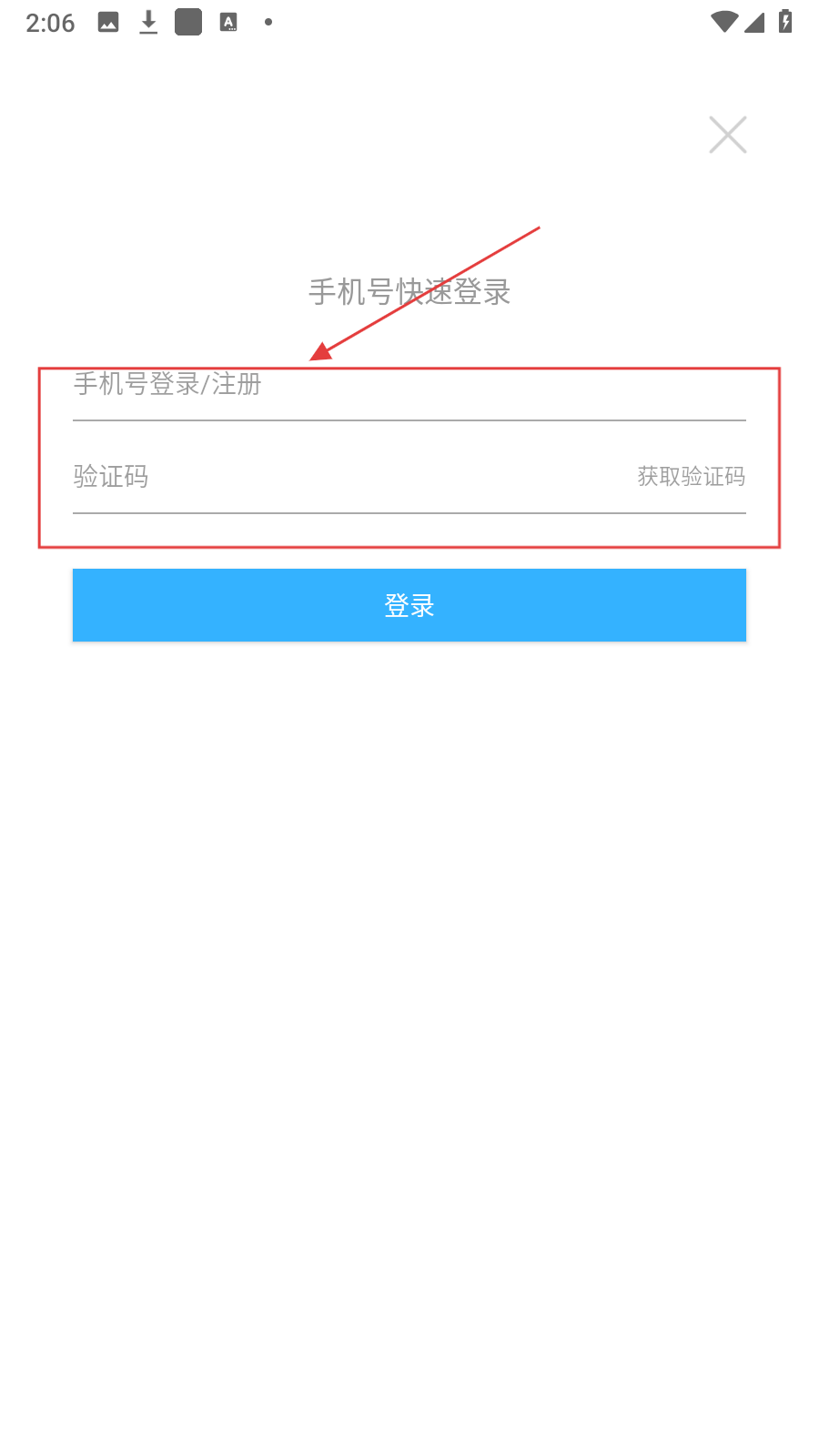 3、在登录/注册界面,输入【手机号和验证码】,准备登录或注册。