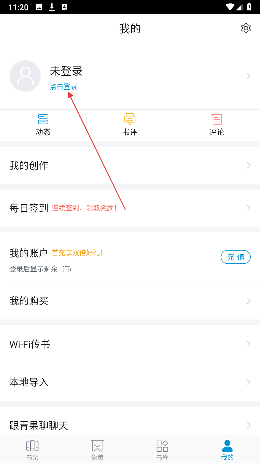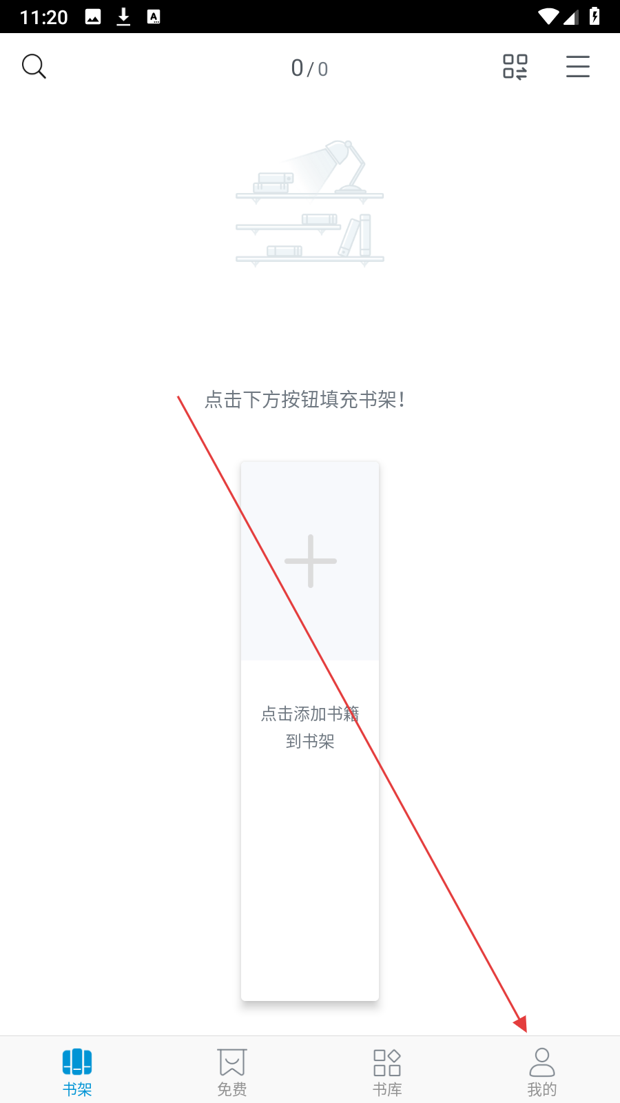 1、在书架页面,点击底部【我的】,进入个人页面。