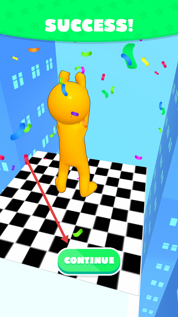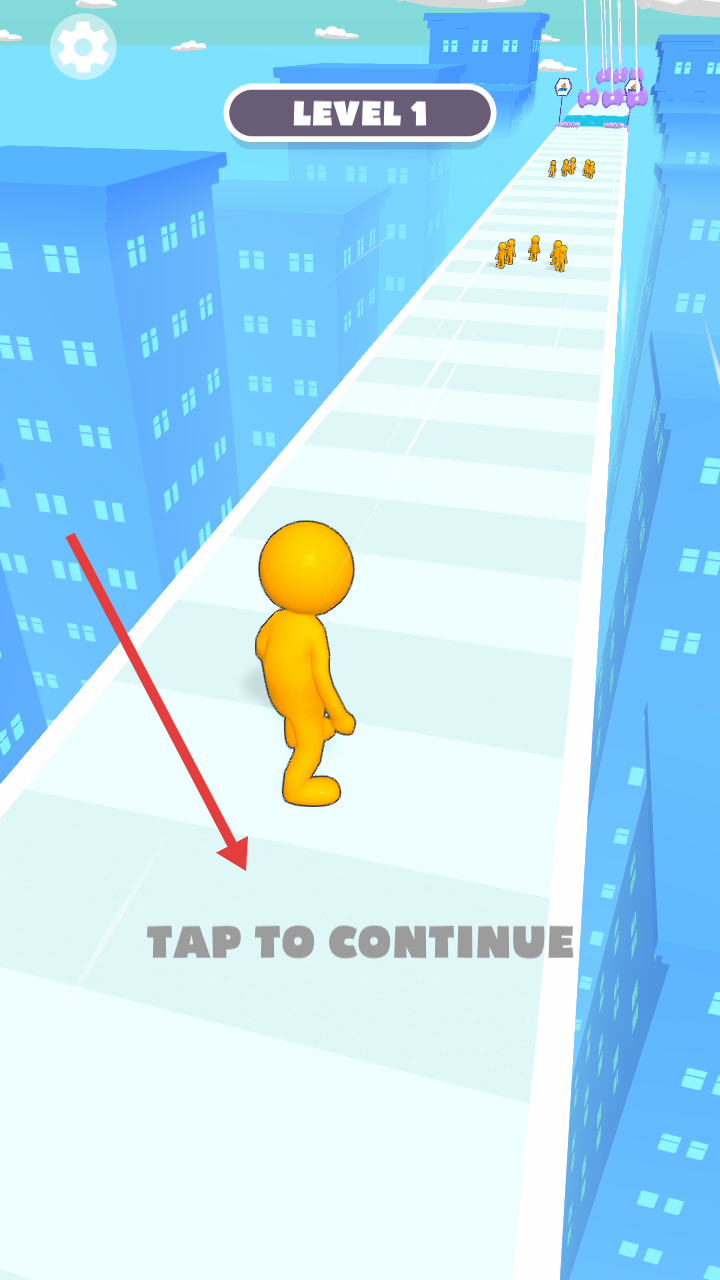 1、点击TAPTOCONTINUE按钮开始游戏,操控黄色角色在城市赛道中前进,开启挑战。